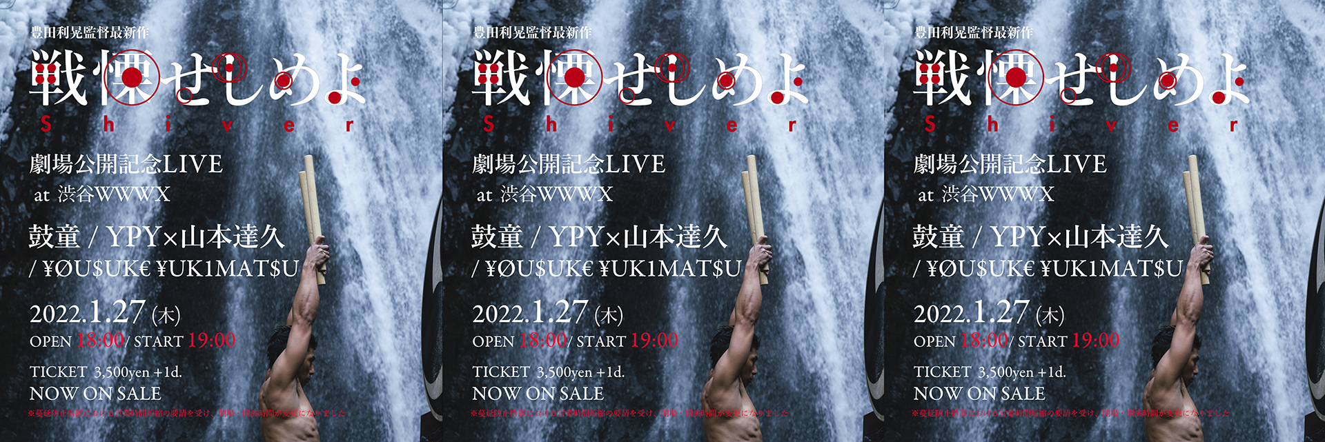 公開を記念して、1月27日(木)、渋谷のWWW Xにてライブイベントの開催も決定。出演は、本映画の顔とも言える太鼓芸能集団 鼓童より二人の演奏者、中込健太と住吉佑太、そして89分の本作全編の楽曲を書き下ろした日野浩志郎によるソロプロジェクトYPYと、実験音楽家でありドラマーの山本達久とのデュオYPY × 山本達久、また日野と大阪時代からの盟友であり現在は東京に拠点を移して活躍する¥ØU$UK€ ¥UK1MAT$U。