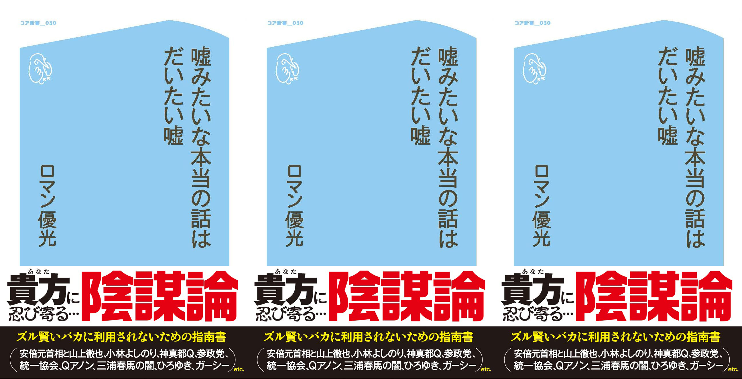 今度は、貴方に忍び寄る…"陰謀論”をテーマに世相を切り刻む、ずる賢いバカに利用されないための指南書「嘘みたいな本当の話はだいたい嘘」!!!