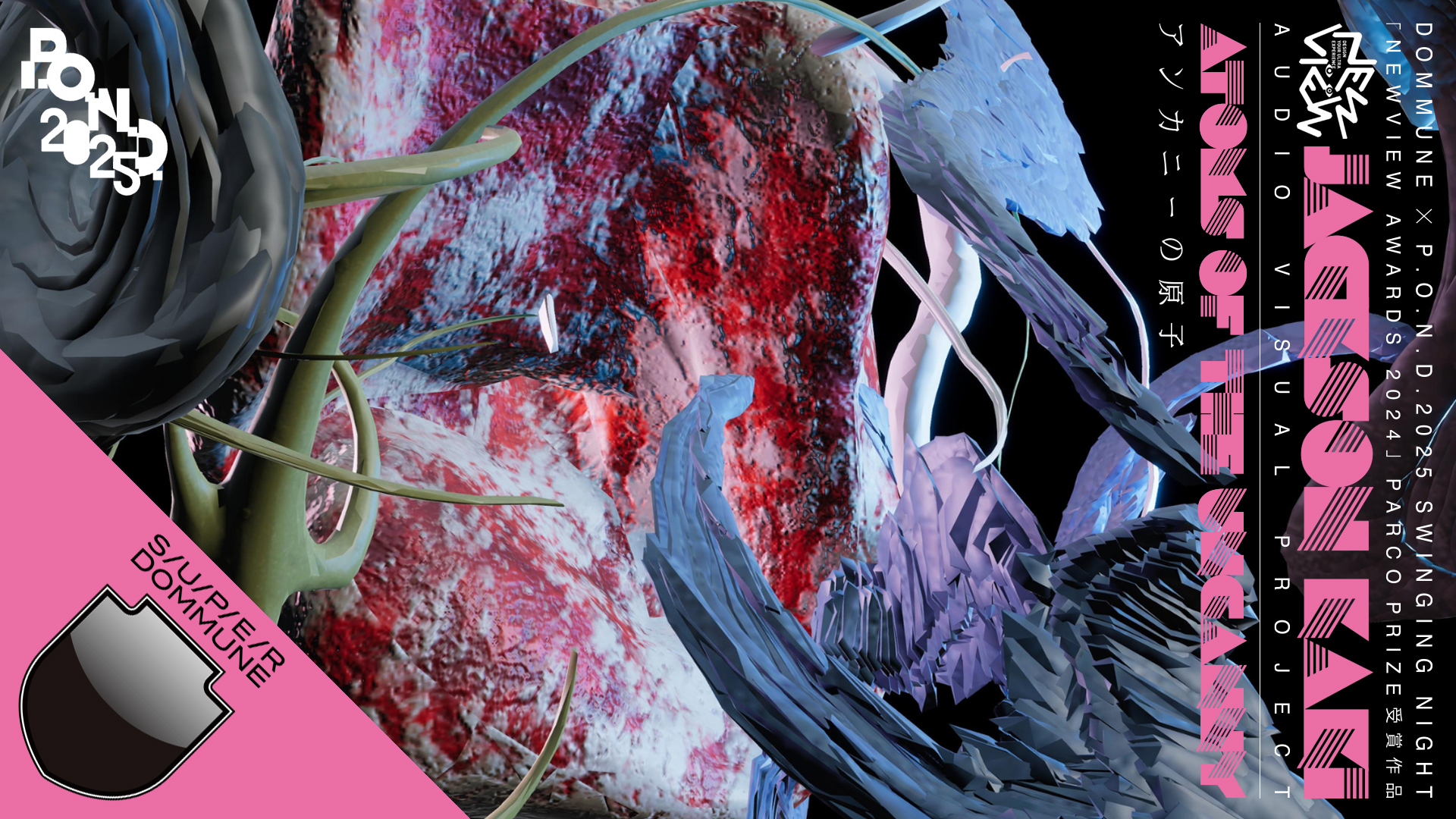 今年のDOMMUNE×P.O.N.D.2025 SWINGING NIGHT、第1部では、イベントの肝となるアートディレクションと空間構成を手がけた、おおつきしゅうと、髙橋義明(A-倉庫)が登壇します。第2部では、4Fグループ展での参加アーティストの選定を担った李静文、石神俊大らのコントリビューター陣が登壇し、第3部では、展示に参加した井澤茉梨絵、菅野歩美、masao、tonii、何梓羽(カ・シウ)、髙橋穣、宇留野圭、Dương Gia Hiếu(ヒエウ)、張聴(ジャン・ティン)ら、また昨年のP.O.N.D. AWARD受賞者・黒瀧藍玖が登場し、リレー形式でのトークをお届けします。第2回目となる「P.O.N.D. AWARD 2025」の受賞者も発表。詳細はぜひ配信をチェックしてください。トークセッション終了後には、P.O.N.D.卒業生でもあるJACKSON Kakiによる、XRコンテンツアワード「NEWVIEW AWARDS 2024」PARCO PRIZE受賞の記念トーク+ライブパフォーマンスタイムに突入し、イベント最終日の夜を彩ります。