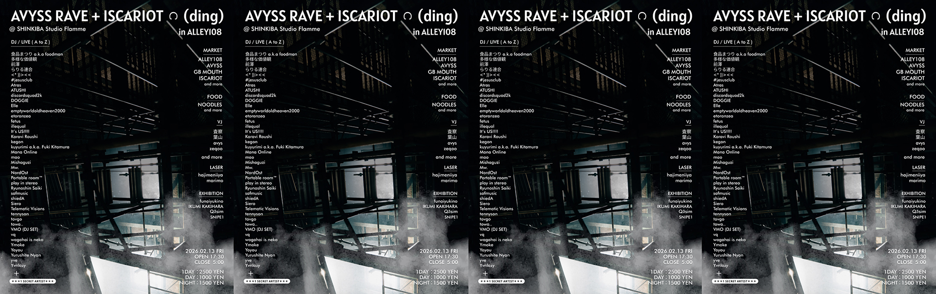 ■路地から廃倉庫へ!AVYSS RAVE + ISCARIOT ᭦ (ding) in ALLEY108 緊急プログラム!!